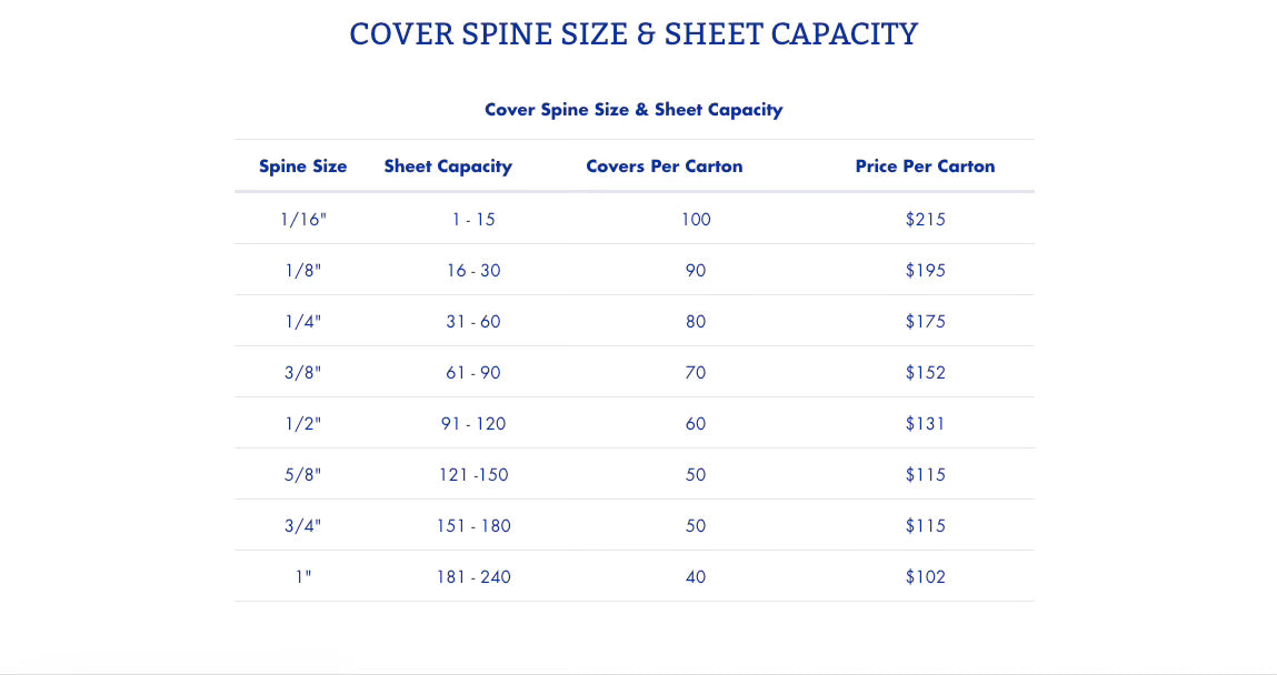 - 5/8" Light Gray Linen Cover with Clear Front (50 cov/ctn); capacity 121-150 pages.